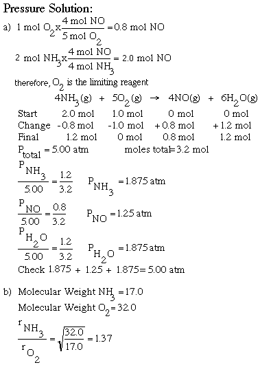 1 mole of oxygen gas and 2 moles of ammonia are placed in a container and allowed to react at 850 degrees celsius according to the equation:
