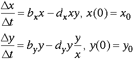 Leslie fixed these by removing the prey dependency in the birth of the predators and changing the death term for the predator to have both the number of predators and the ratio of predators to prey.