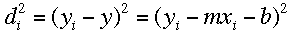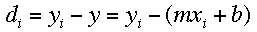 Data Fitting: Linear Least SquaresFor a general linear equation, y=mx+b, it is assumed that the errors in the y-values are substantially greater than the errors in the x-values. The vertical deviation can be calculated using this formula: