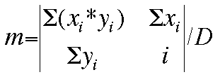 By the use of matrix algebra (determinants), the values of the slope (m) and the y-intercept (b) can be calculated. A short review of determinants:
