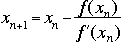 Here, xn is the current known x-value, f(xn) represents the value of the function at xn, and f'(xn) is the derivative (slope) at xn. xn+1 represents the next x-value that you are trying to find. Essentially, f'(x), the derivative represents f(x)/dx (dx = delta-x). Therefore, the term f(x)/f'(x) represents a value of dx.