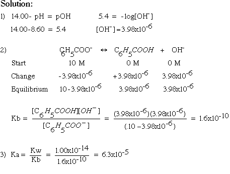 C6H5COONa is a salt of a weak acid C6H5COOH. A .10 M solution of C6H5COONa has a pH of 8.60. Back to the Acid Base Page |