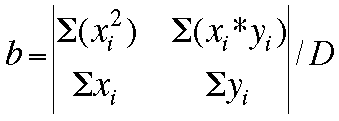 By the use of matrix algebra (determinants), the values of the slope (m) and the y-intercept (b) can be calculated.