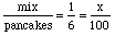Answer:Using the same technique as above: We know from the first row of the table that the ratio of mix to pancakes is 1 : 6. We can get the amount of mix for 100 pancakes using a proportion: