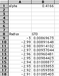 Next to the Radius column, title the next cell "Gaussian" or "GTO."